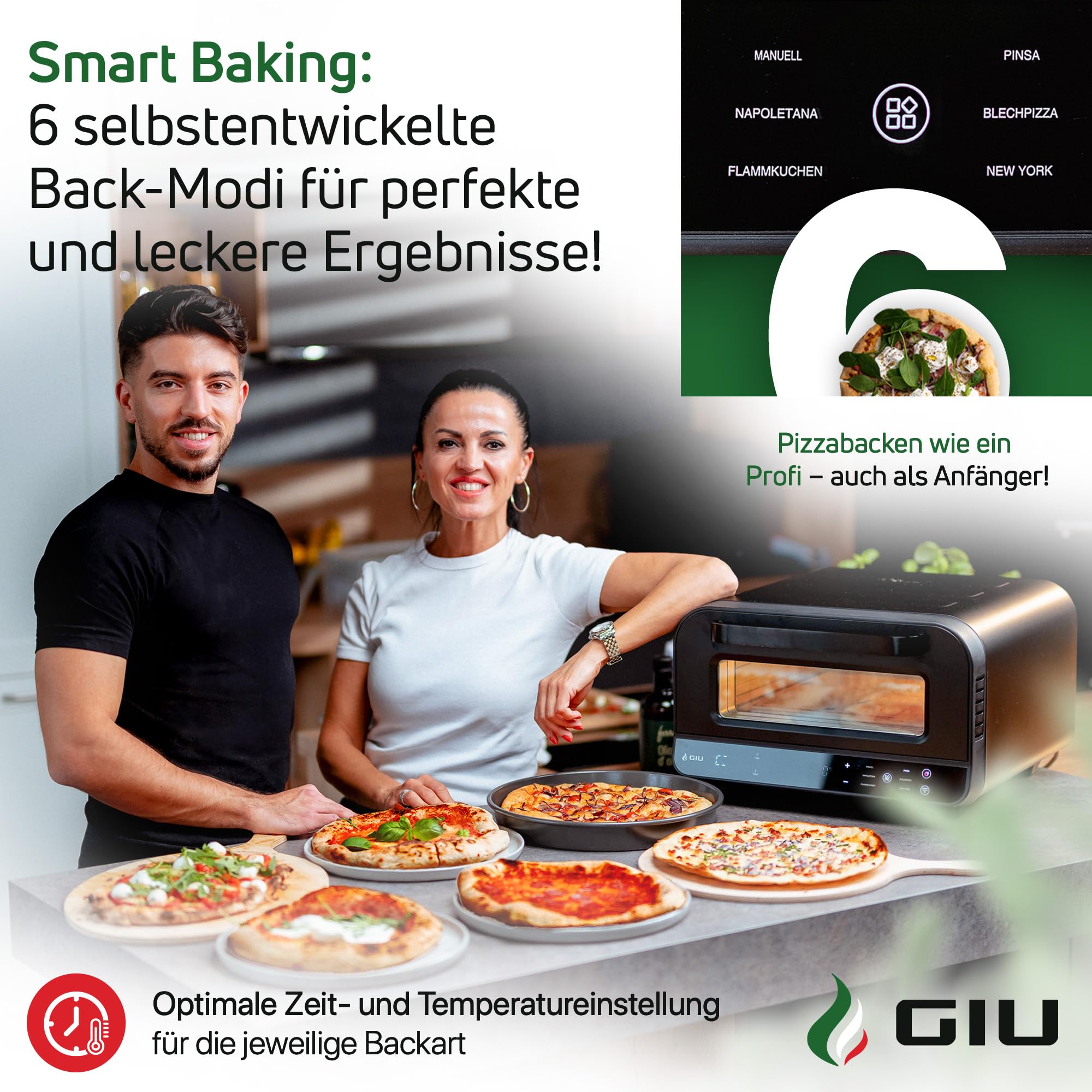 GIU Elektrischer Pizzaofen - Starker Elektro-Ofen fรผr neapolitanische Pizza | Backofen, Pizzaofen, elektrisch, Electric Oven | รber 400 Grad FusionHeat-Tech | Genieรe Steinofen-Geschmack Zuhause
