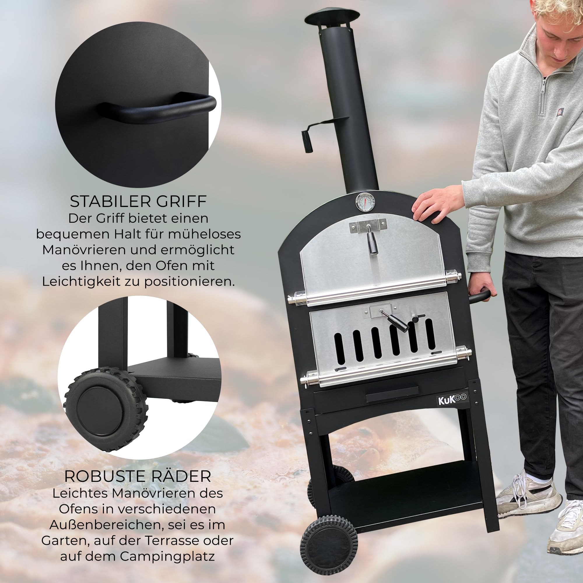 Kukoo Outdoor Ofen Gartenofen Pizzaofen Gartengrill Pizzastein Terasse Grill Gartenbackofen Smoker 156 cm H x 64 cm B x 43 cm T Gratis Pizza Schieber