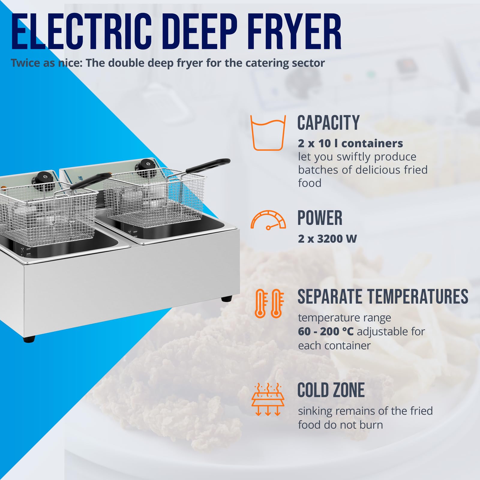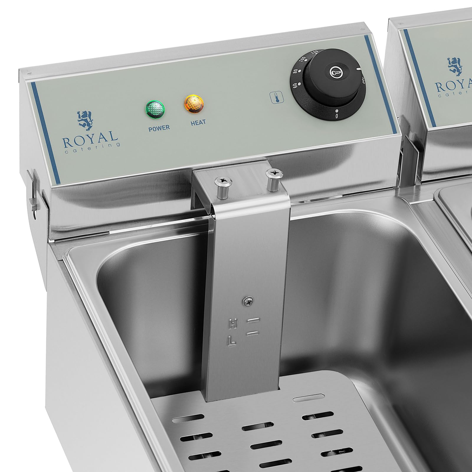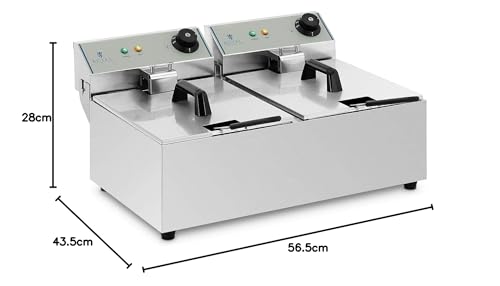 Royal Catering Kommerzielle Fritteuse Kapazität 2 x 10 l 6400 W 60-200 °C Kaltzone Ablasshahn autom. Abschaltung Thermoschutz Cool-Touch-Griff Elektro-Doppel-Fritteuse Gastro-Fritteuse